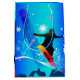 Snowboarding, snowboarder with board on blue backg medium gift bag