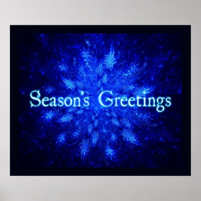 A wintry theme featuring a swarm of blue fractal snowflakes. Text reading "Season's Greetings" appears in glowing blue and white.