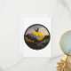 A sticker with an eagle flying over a mountain, in the style of contemporary landscape, golden light, black mountain college, fisheye lens, arts and crafts movement, mid-century illustration