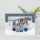 A modern and cosy hygge holiday card in soft colours featuring your favourite horizontal or landscape orientated photo on a colorblock snowdrift background in shades of blue and grey. "Happy Holidays" or your choice of custom greeting appears beneath, alongside your family name