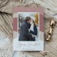 A modern and elegant holiday card in soft colours featuring your favourite vertical or portrait orientated photo on a colorblock snowdrift background in desert inspired shades of rose and tan. "Joyous Hanukkah" appears beneath in beautiful handwritten script, with your family name beneath.