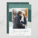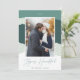 A modern and elegant holiday card in soft colours featuring your favourite vertical or portrait orientated photo on a colorblock snowdrift background in shades of spruce and hunter green. "Joyous Hanukkah" appears beneath in beautiful handwritten script, with your family name beneath.