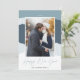A modern and elegant holiday card in soft colors featuring your favorite vertical or portrait oriented photo on a colorblock snowdrift background in shades of blue and gray. "Happy New Year" appears beneath in beautiful handwritten script, with your family name beneath.