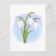 Snowdrops - Spring Flowers on Watercolor Blue Postcard
