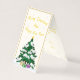 Outside Front : designed with gold rectangular frame. Decorated with snow, snowflakes, gifts and Christmas tree. Text placeholders are provided for editable message.