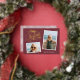 Festive holiday photo card features two photos in snapshot style, with "Merry Christmas" in embellished gold foil script. Personalise with your family signature and the year.