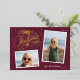 Festive holiday photo card features two photos in snapshot style, with "Merry Christmas" in embellished gold foil script. Personalise with your family signature and the year.