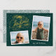 Festive holiday photo card features two photos in snapshot style, with "Merry Christmas" in embellished gold foil script. Personalise with your family signature and the year.