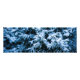 Snowfall in the forest. Snowflakes in the air. Snow covered Christmas tree. Blue and green colours, winter mood. Merry Christmas and Happy New Year to you and yours!