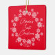 Abuela's First Christmas Ornament set on a red background framed with a white snowflake wreath. A Wonder grandparent Christmas gift sure to be treasured for many years to come. !