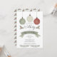 Festive holiday baubles crested with snowflake patterns set the tone for a classically beautiful yet wonderfully modern wedding design in updated dusky sage green and terracotta and white with black text. A banner gives emphasis to the lucky couple's names with details below. Back features a coordinating holly and pine bough pattern design. Elegant yet whimsical styling that will surely impress your recipients.