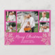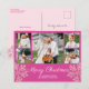 Celebrate the Christmas colour trend of pink, dark rich berry pink, with these 5 family photo and pink snowflake postcards. Personalised Christmas postcards are a fun and festive way to send holiday greetings and this deep raspberry pink design with faux glitter pink snowflakes and your treasured photos will create a unique postcard just for you. The top portion of the design features templates to add five of your pictures, a large one in the centre with two smaller photos stacked on either side. The bottom third of this deep berry pink holiday postcard design includes two large faux sparkle snowflakes, Merry Christmas in a pretty white script font (you can change it to Happy Holidays if you wish) and room at the bottom for you to add your names and a short greeting. The reverse of each custom photo Christmas postcard reveals a coordinating soft blush pink background, room for your personalised holiday greeting, a template in the upper left for your return address if you want to add one and a single pink snowflake accent in the lower left. Designed with you in mind, these pink snowflake personalised postcards featuring your photos and a pop of berry pink are ready for you to customise and make your own.