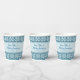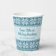 Personalised Christmas holiday or winter party paper cups featuring a cosy blue Nordic snowflake faux knit sweater pattern with your custom titie or greeting (like Happy Holidays, Merry Christmas, Season's Greetings, etc. for Christmas or Happy Birthday Name or other special occasion title). ASSISTANCE: For help with design modification or personalisation, colour change, transferring the design to another product or if you would like coordinating items, contact the designer BEFORE ORDERING via the Zazzle Chat MESSAGE tab below or email makeitaboutyoustore@gmail.com.