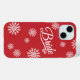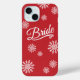 This cute iPhone case is accented with Bride, written in fancy white type on a red background and lots of snowflakes making it the perfect gift for the new bride over the holidays.