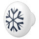 Snowflake pull knob in navy blue on a white background ceramic pull knob.