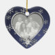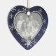 Dual photo, heart shaped ornament in blue with pretty snowflakes, with moveable date snowflake.