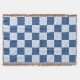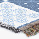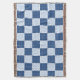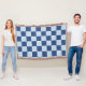 Wintry blue and white throw blanket with a snowflake chequerboard pattern.