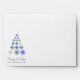 Festive and simple personalised Christmas holiday envelope. Beautiful colourful Christmas tree made of big and small snowflakes, Happy holidays text and personal note from you in trendy script handwriting. Send your holiday mail in this simple but stylish envelope to your friends and family.