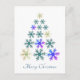 Festive and stylish Christmas holiday postcard. Beautiful Christmas tree made of big and small snowflakes and Merry Christmas text. Wish happy holidays with this stylish postcard to your friends and family.