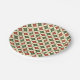 Snowflake Circles-PAPER PARTY PLATES, take out box style-An allover background print of over-lapping circles with snowflakes in the centre. The circles are an off-white cream colour. They appear like inverted leaf or flower petals with digital stitching. Two rows of digital stitching decorate the edges of the circles. In the centre of the individual circles sits an individual gold metal snowflake. The overall background colour is available in assorted colours. The centre behind the snowflake varies from pattern to pattern. Choose any size of Zazzle paper plates. Coordinating Zazzle home gifts and party supplies is available.