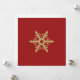 A snowflake vector digital design with a gold snowflake on a dark red background.