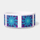 This aqua blue and white snowflake fractal is featured against a magenta or violet background. This digital art pattern features a range of colours from light blue to medium blue from the centre to a deep purple along the outer edges.