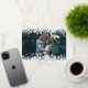 Elegant and modern holiday card design features your favourite horizontal or landscape orientated photo framed at the top and bottom by a border of white snowflake illustrations. "Happy New Year" appears in modern lettering as a gold foil text overlay in the centre, with your name(s) and the year beneath. To reposition text elements, use the Customise or Personalise feature.