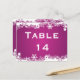 Snowflake fuchsia winter wedding table number postcard, featuring a white border of snowflakes on glowing fuchsia background. A perfect choice for Winter December weddings.