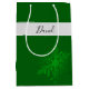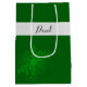 Green personalised gift bag with a shimmering snowflake (digitally created and does not actually shimmer).
