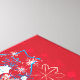 Snowflake greetings in red, blue and whites. May you have cosy and warm holiday time! Cheers!