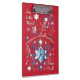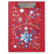 Snowflake greetings in red, blue and whites. May you have cosy and warm holiday time! Cheers!