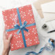 A simple, festive snowflake patterned holiday gift wrap in coral and white - festive and classic, with a touch of whimsy! Perfect for wrapping all your holiday gifts in a unique and beautiful colour palette!
