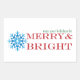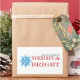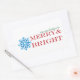 Holiday stickers with blue snowflake design and the text "may your holidays be merry and bright."
