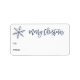 Hand lettered Merry Christmas script in festive blue, holiday gift labels. Features, cute blue snowflake accent.
