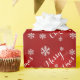 This pretty wrapping paper is red with the words Merry Christmas in white, and lots of snowflakes. You can change the words and add your own.