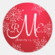 Snowflake Monogram Wedding Red 2 Classic Round Sticker