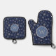 Add a touch of winter elegance to your kitchen with this delightful pot holder and oven mitt set. Adorned with a charming snowflake pattern on a deep blue background and featuring a stylish initial monogram, these items combine festive flair with practical utility. Perfect for holiday baking and cooking, they are a must-have for anyone who loves to create warm, inviting meals during the colder months.