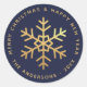Snowflake Navy Blue Faux Gold Elegant Christmas Classic Round Sticker