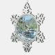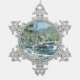 Snowflake ornament with image of Glade Creek Mill on a snowy frosty day.