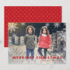 Simple and elegant with a festive snowflake overlay at the edges, our holiday card features your favorite landscape oriented photo with "Merriest Christmas" and your personal message in bold, modern red typography.