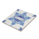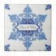 Snowflake pattern blue & white holiday custom name ceramic tile. You can edit the text in the center, change the font, change the color, size, etc. Gift these tiles as custom name coasters for each family member, for friends or teams, use them for home accents on your bookshelves, in your living rooms and bedrooms, or as mosaic wall art with other tiles. Or leave the central space empty, and use as decorative backsplash ceramic tiles.