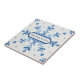 Snowflake pattern blue & white holiday custom name ceramic tile. You can edit the text in the center, change the font, change the color, size, etc. Gift these tiles as custom name coasters for each family member, for friends or teams, use them for home accents on your bookshelves, in your living rooms and bedrooms, or as mosaic wall art with other tiles. Or leave the central space empty, and use as decorative backsplash ceramic tiles.