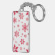 Snowflake Pattern, Red Snowflakes, Snow, White Key Ring