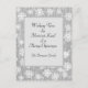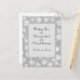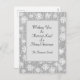 Snowflakes on a silvery grey background. Personalised Calligraphy Holiday Postcard is ready for you to customise. Template is set up for you to add your family name.