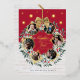 Send some love and holiday cheer to your family and friends with our magical and festive Christmas card. Display and decorate the beautiful watercolor sage green eucalyptus and festive winter greenery hanging wreath with your special family memory photos with our beautiful 6 photo collage wreath. Each photo is framed in gold foil with festive red cranberry accents. Gold foil snowflakes are placed within the Christmas wreath arrangement. Simple falling gold foil snowflakes cascade from above, creating a cosy and magical winter scenery. The middle of the wreath displays a cheery holiday greeting "Brighter Year Ahead" displayed in elegant gold foil calligraphy. The background features a two-tone card with a white shiplap wood texture. Customise with your family signature and year. Reverse side with white shiplap wood texture and a faux gold bow and ribbon corner accent. Wreath illustration hand-drawn original artwork by Moodthology Papery.