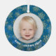Your favourite photo is featured on a round ceramic ornament with gold snowflakes on a blue blurred lights Christmas background. Upload your own image to create Christmas tree ornaments for yourself or give as a gift to family, friends, parents and grandparents! MORE materials, shapes and DESIGNS in our store.
