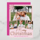 Personalised photo Christmas cards with real foil accents add a bit of glitz and glam while this pink snowflake design embraces the Christmas colour trend of pink, pale pink. The simple collage design features four of your favourite family photos, each edged with a thin frame of real rose gold foil. The main photo at the top of these custom Christmas cards is accented with a single faux pink glitter snowflake in the upper left hand corner while a trio of smaller pictures across the bottom give you lots of choices for sharing treasured memories from the past year. Merry in a modern script font and Christmas in a larger font are both printed with real foil, shown here in rose gold, to add to the glam and elegance. Your name, and the year if you like, are printed at the bottom in a dark berry pink. These blush pink Christmas cards reverse to a solid background of deep berry pink with a text template in white where you can add a holiday greeting if you like. So embrace the pink, flirt with the pink snowflake and then add your 4 photos and create your own designer holiday cards.