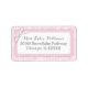 Pink background with white snowflakes and a 3D-look polka-dot bow baby girl address labels.