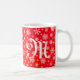 Snowflake Red Festive Modern Chic Elegant Monogram Coffee Mug. (The background colour is slightly uneven - that is part of the design, not print error. )