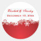 Snowflake red white winter wedding Save the Date Classic Round Sticker